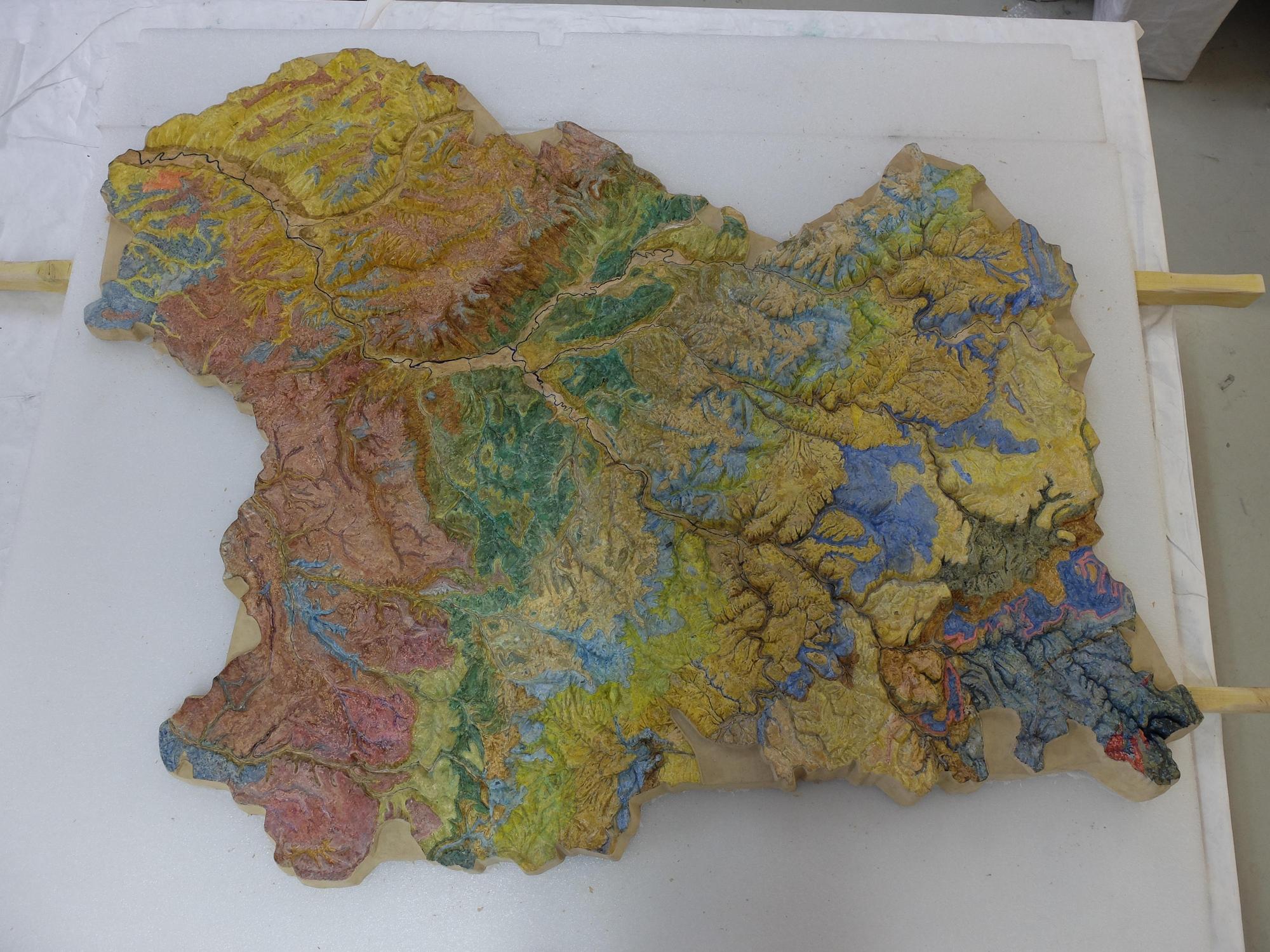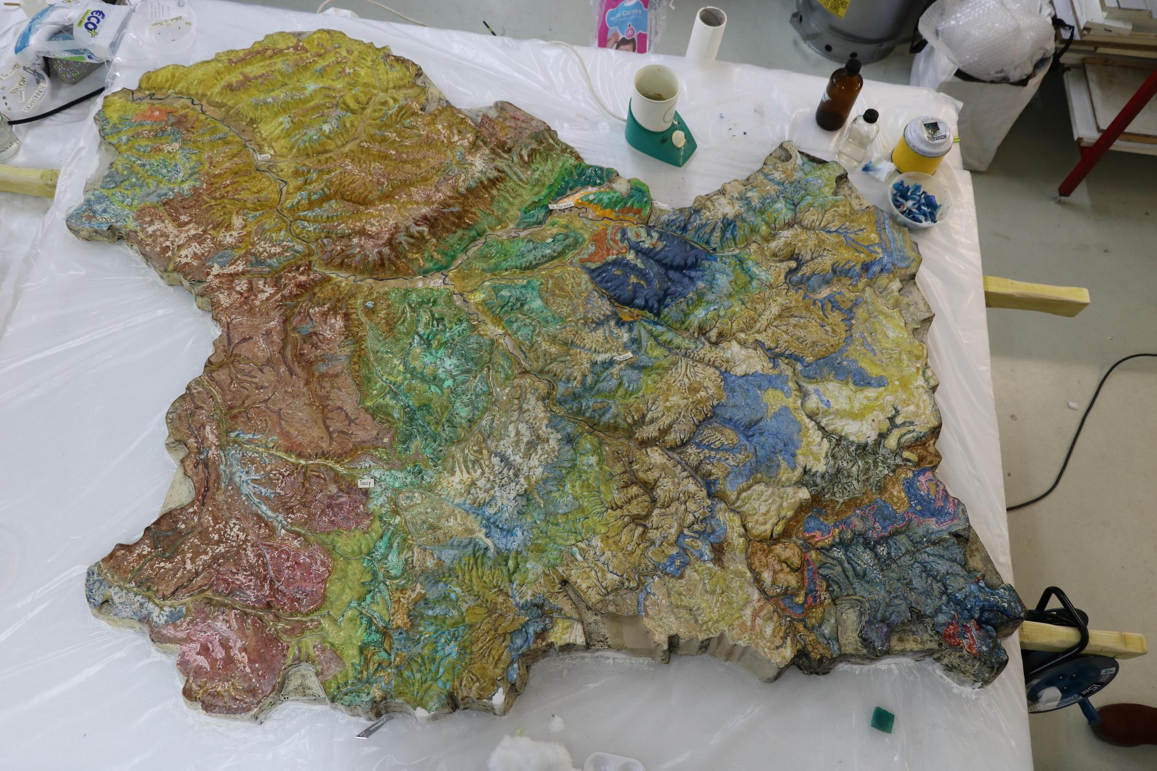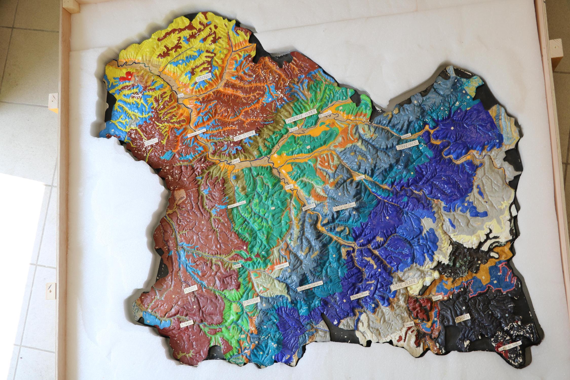 Le plan-relief en plâtre de l’abbé Henri Bouvier représentant le département de l'Yonne était une carte géographique/topographique. Celui-ci fut repeint en carte géologique dans les années 70-80 pour une utilisation muséographique. Afin de redonner l'aspect historique de ce plan-relief, une étude a été réalisée en 2021 par des restauratrices du patrimoines pour retirer le repeint et retrouver la polychromie initiale. Celle-ci valida la faisabilité d’une restauration complète du plan-relief. Ainsi, avec l'accord préalable de la commission scientifique régionale de restauration, le plan-relief retrouve son aspect initial en 2023.